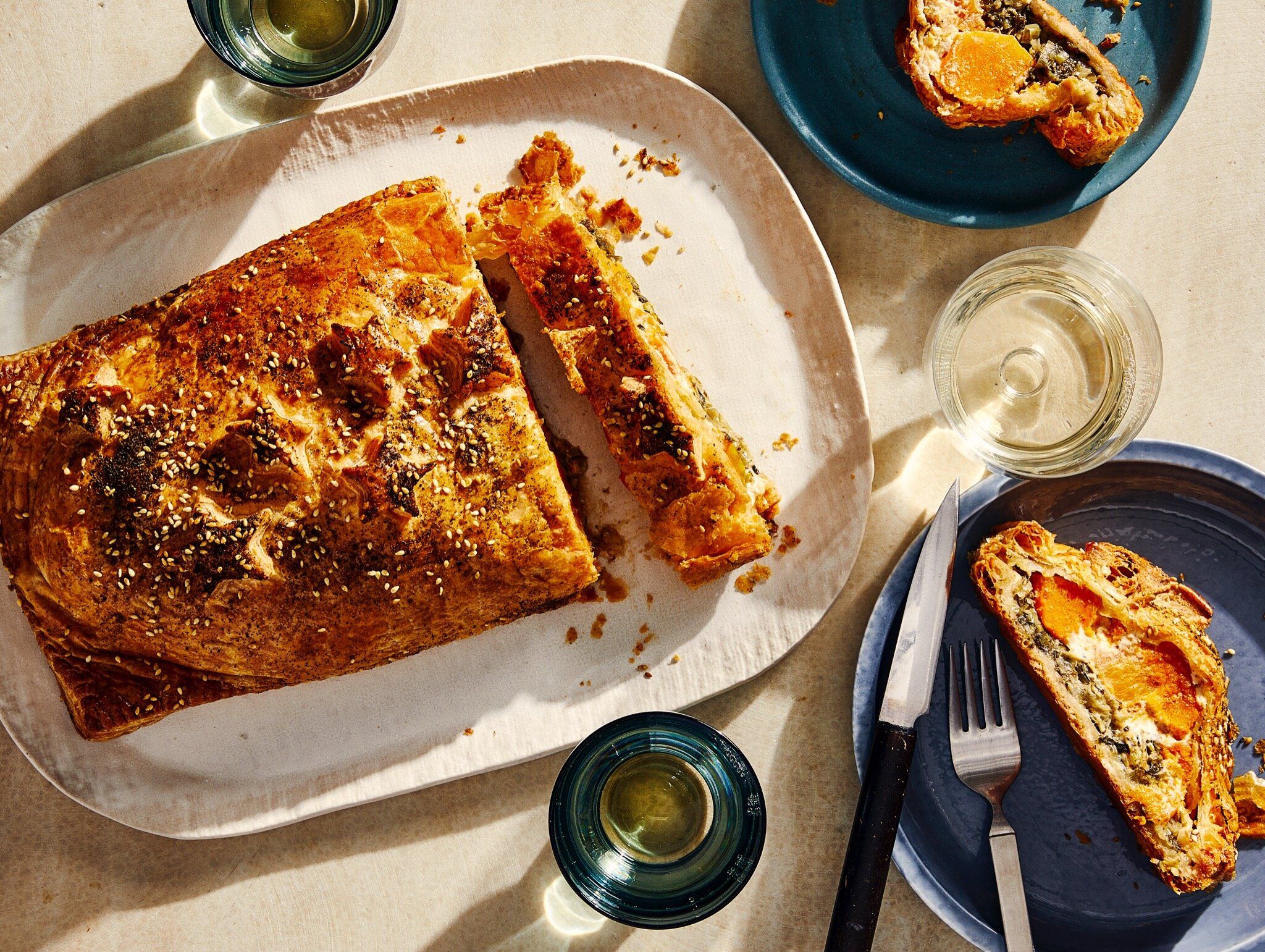 Als alle smaken van de herfst ineengerold zouden kunnen worden, zou deze meringuerol het resultaat zijn: verwarmende kaneel, gebrande honing, zoete appels en pittige sinaasappel komen bijeen in een dessert dat heel geschikt is voor de feestdagen van het najaar en de winter. Zorg ervoor dat alle onderdelen volledig koud zijn voor u ze samenvoegt – het is niet de bedoeling dat er veel vocht in de rol ontstaat. Begin een dag van tevoren met de appels en de room en houd ze tot gebruik in de koelkast.