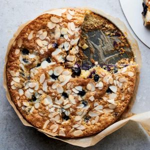 Kokostaart met amandelen en bosbessen