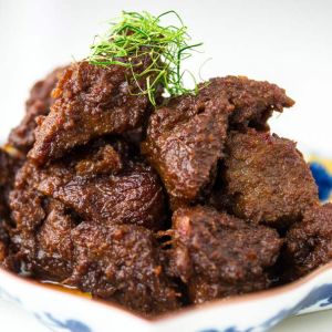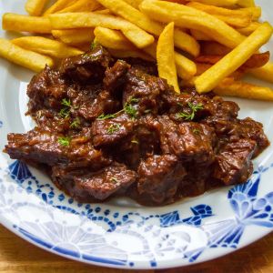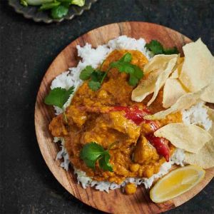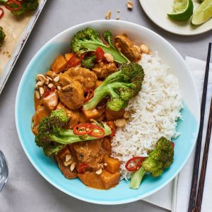 Massamancurry met Zoete Aardappel en Varkensreepjes