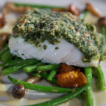 Dep de vis droog, controleer de filets op graten en wrijf ze in met zout en peper. Verhit een middelgrote koekenpan op middelhoog vuur met 1-2el olijfolie en bak de vis ca. 1min per kant. Leg de filets in een ovenschaal en verdeel de topping erover. Bak 8-10min in de oven, tot de vis gaar is en de topping knapperig en goudbruin is.
